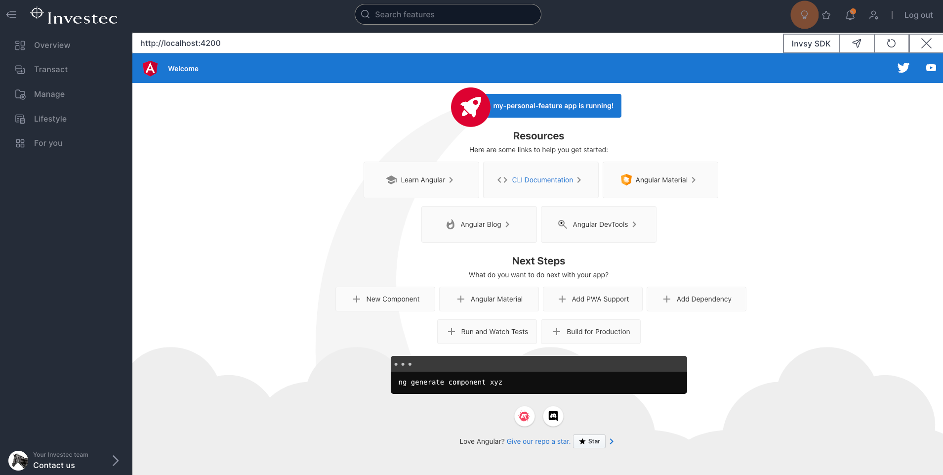 giga.platform.init().then(() => giga.platform.initSession())Serve and view your application in Investec Online